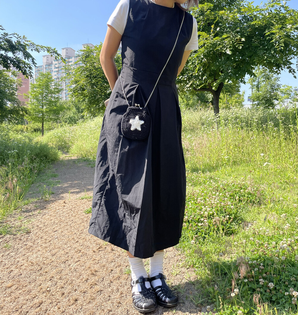 검정색, 하얀색 그리고 은색의 단순한 색상의 조합으로 만들어진 가방입니다.