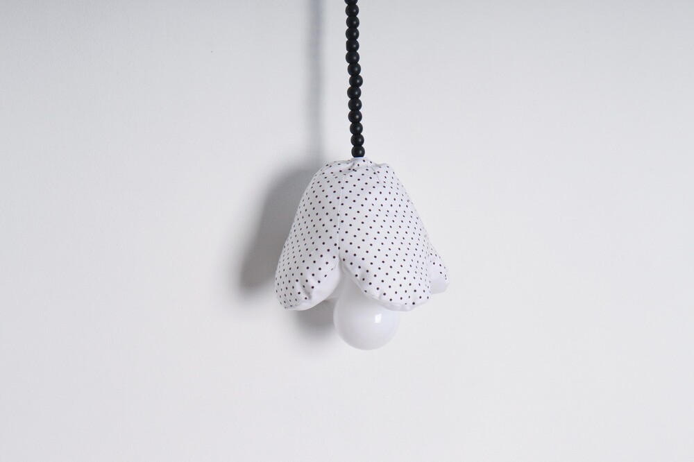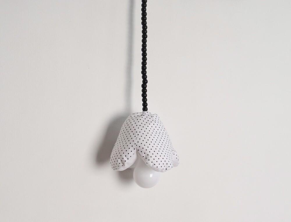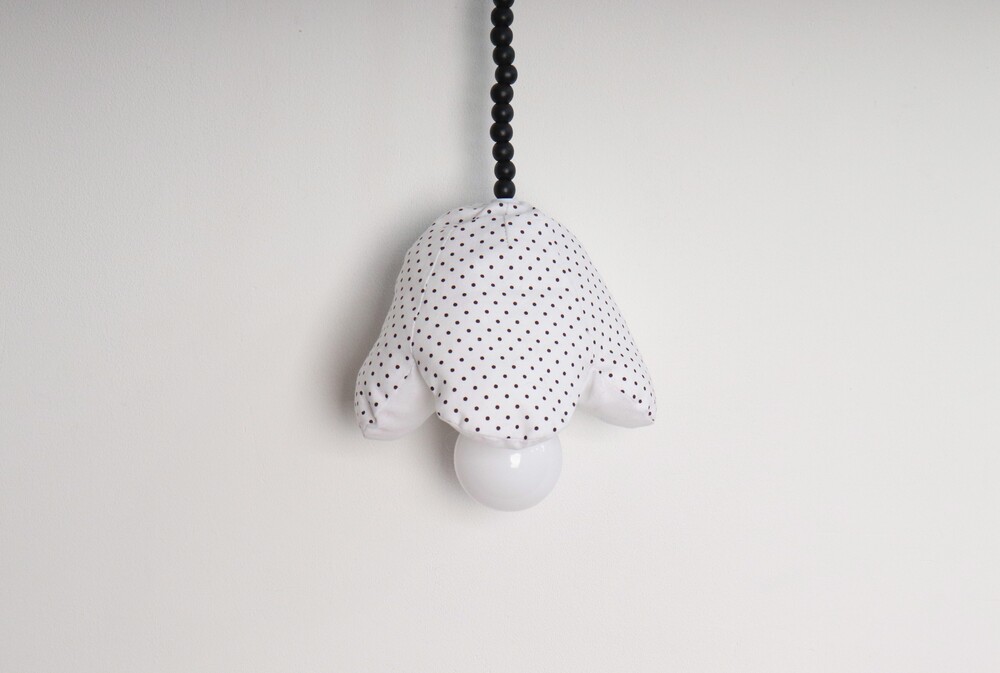 은방울 꽃을 닮은 네개의 꽃잎이 있는 폭신 폭닥한 패브릭 행잉 조명입니다.