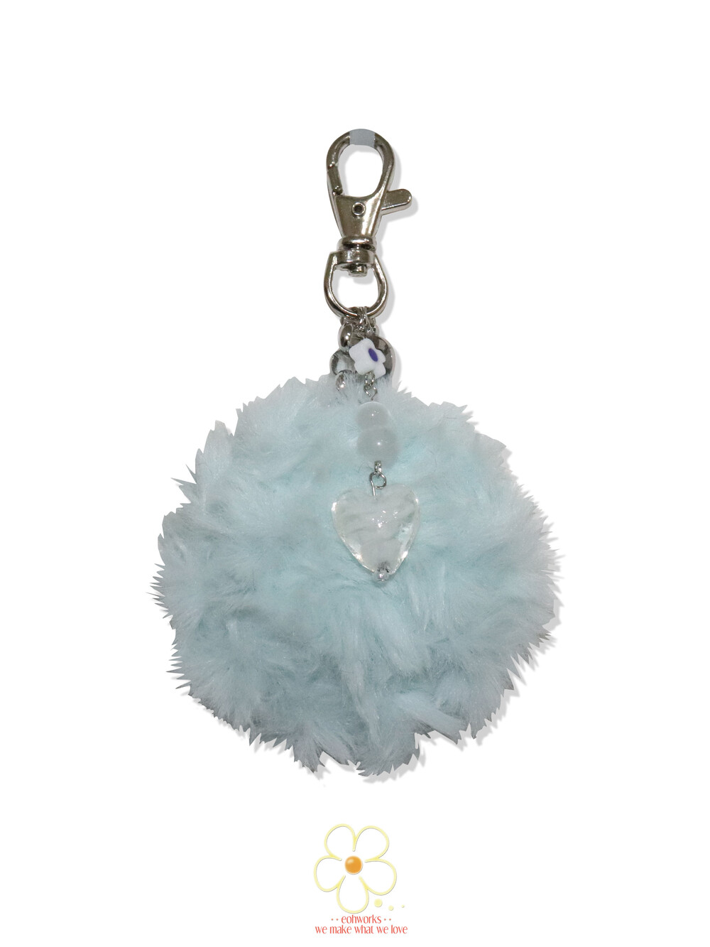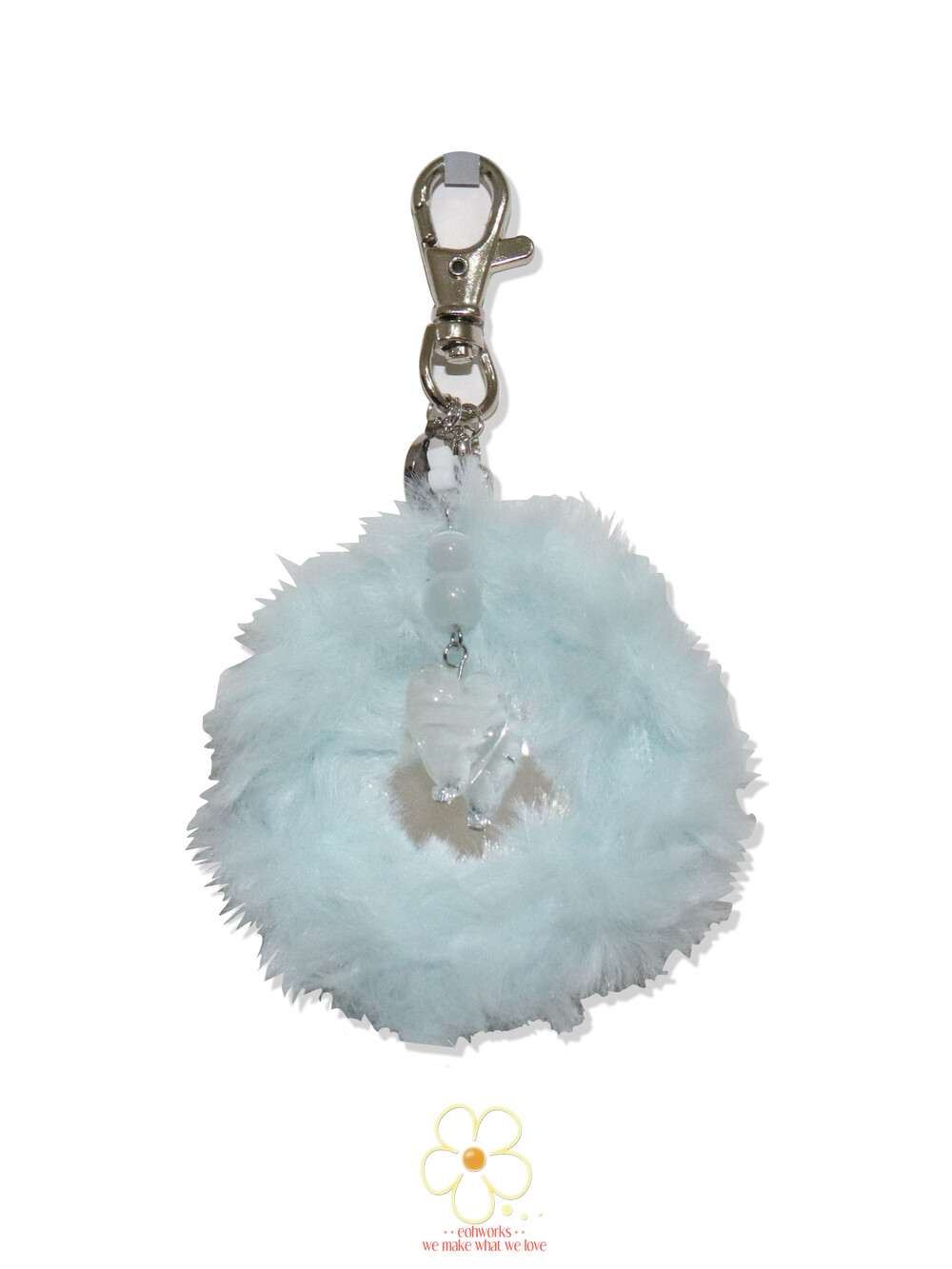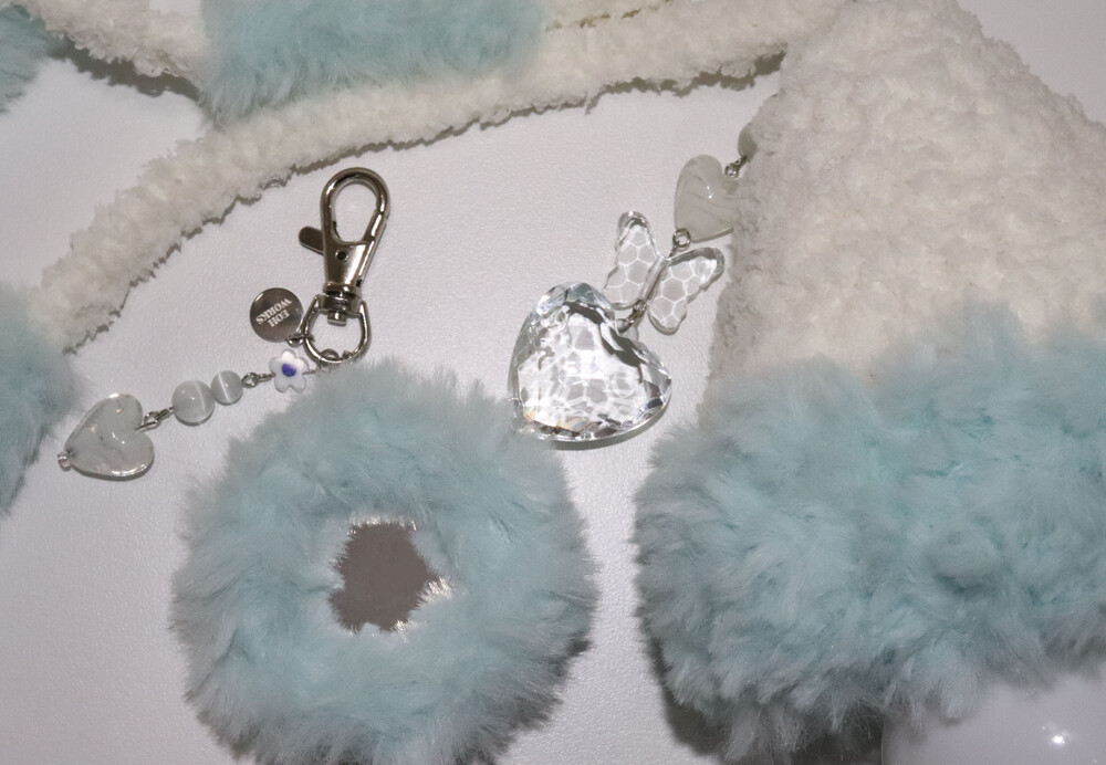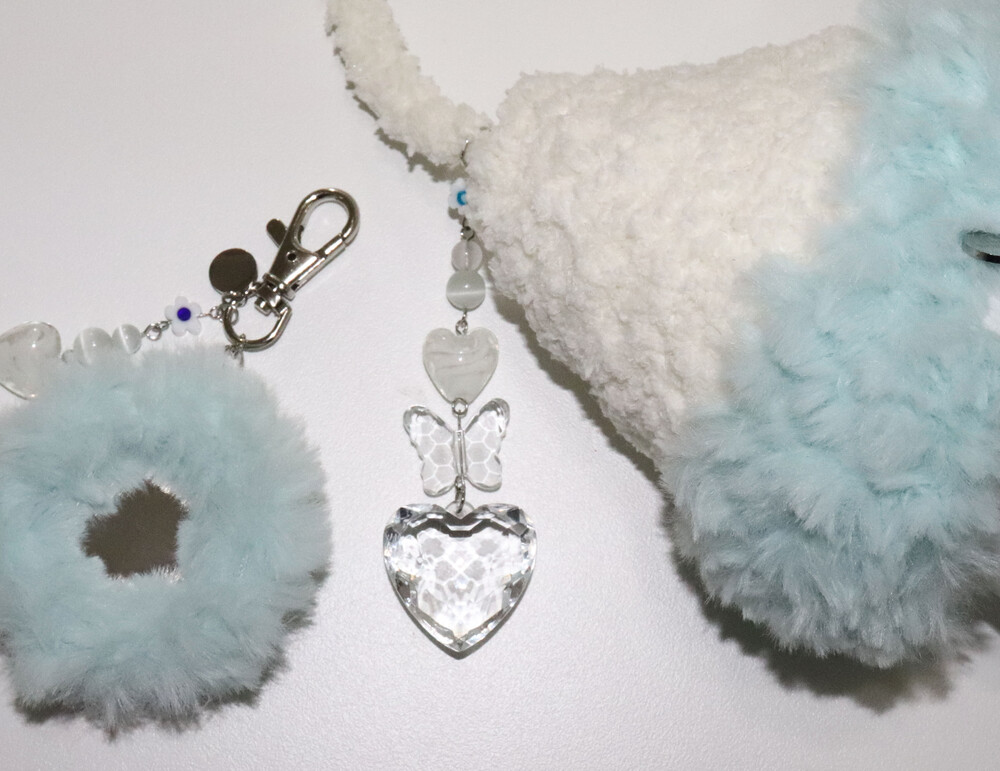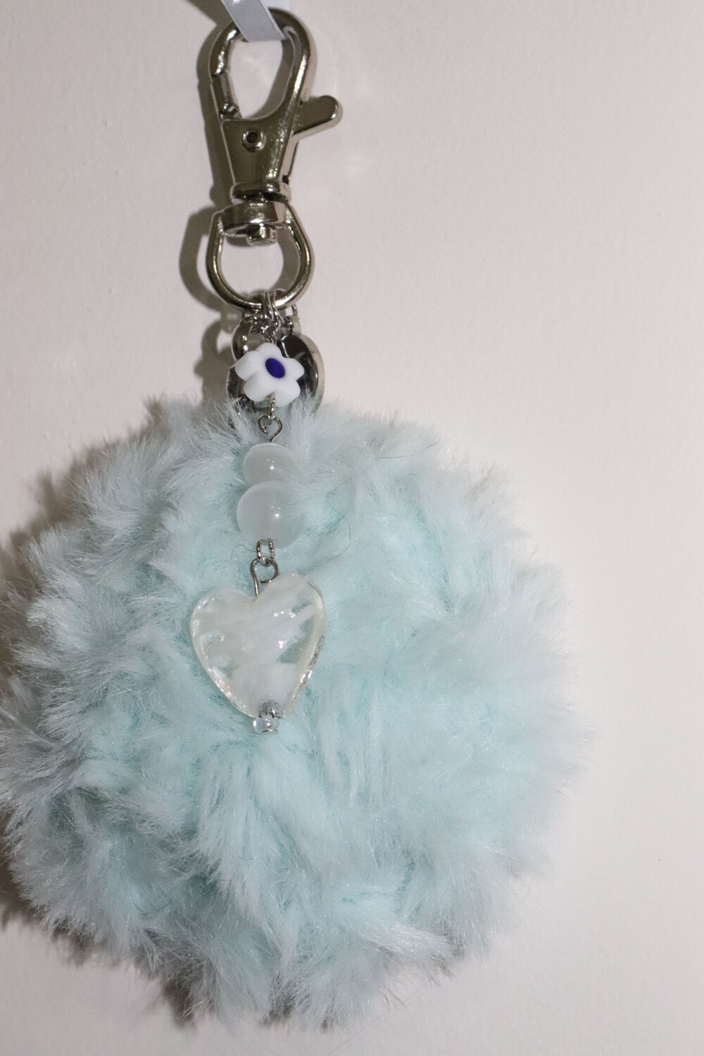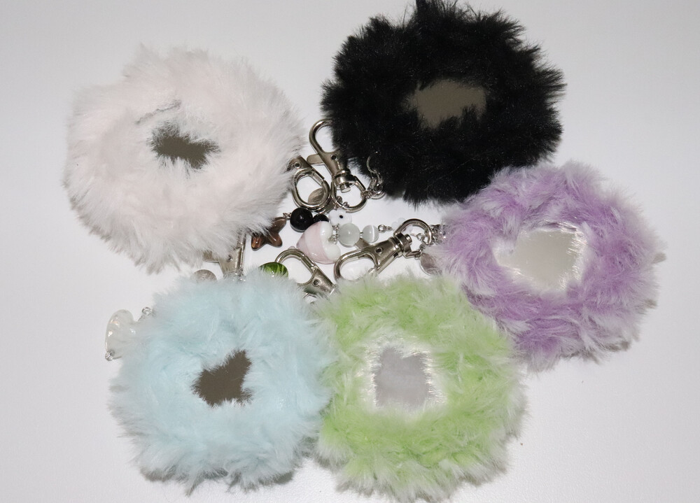 fluffy icy blue miniature mirror keyring
