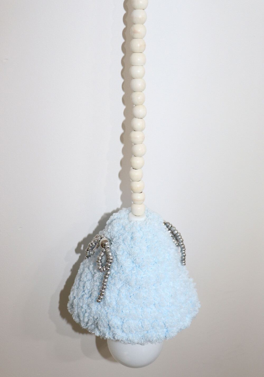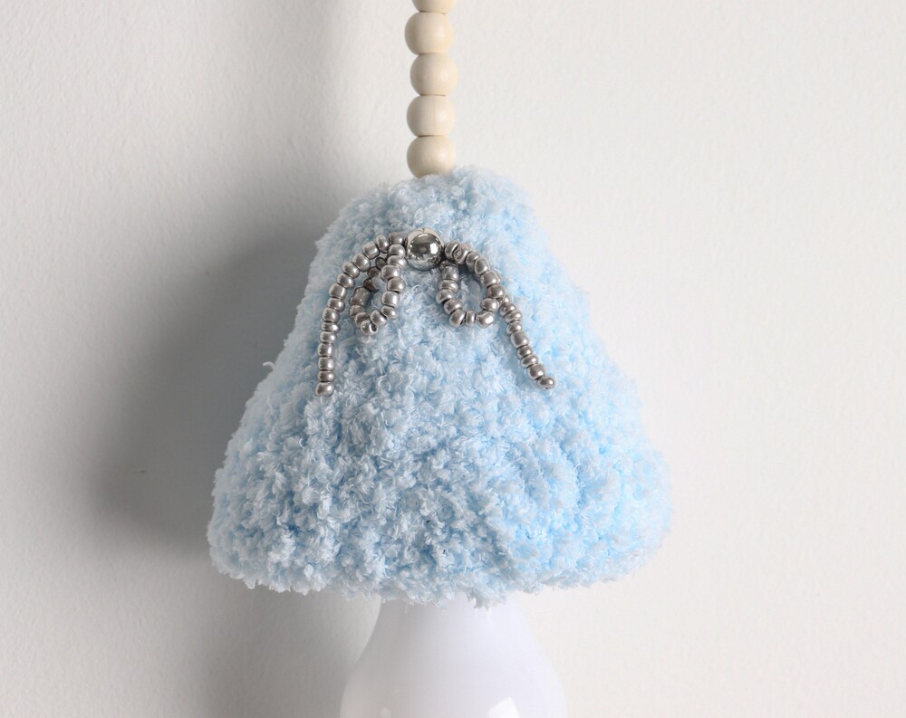 포근한 수면사와 우드 구슬의 조합이 따뜻한 제품입니다.
