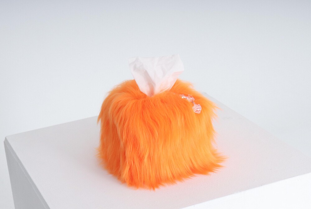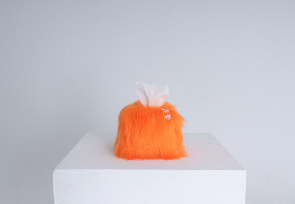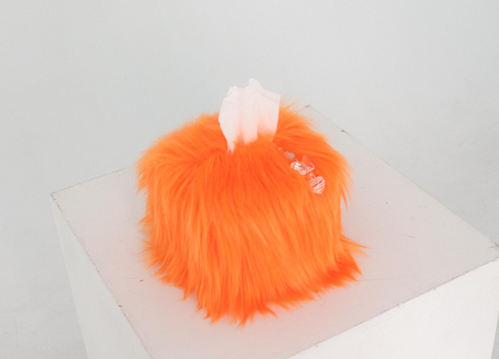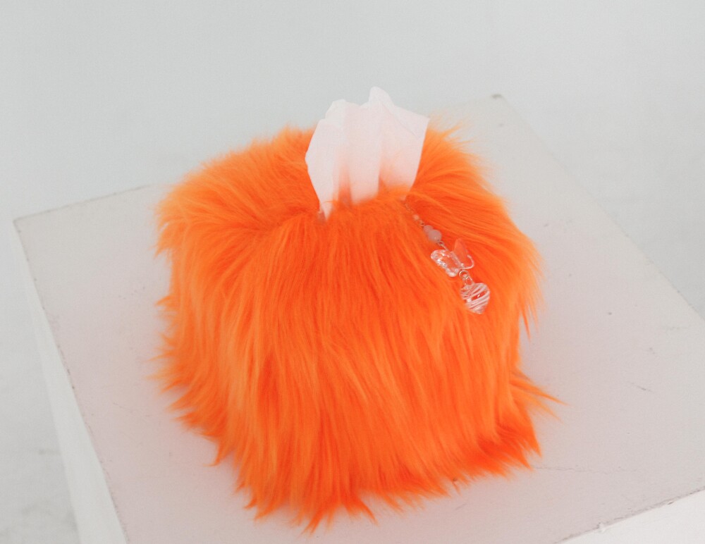 small orange hairy tissue case