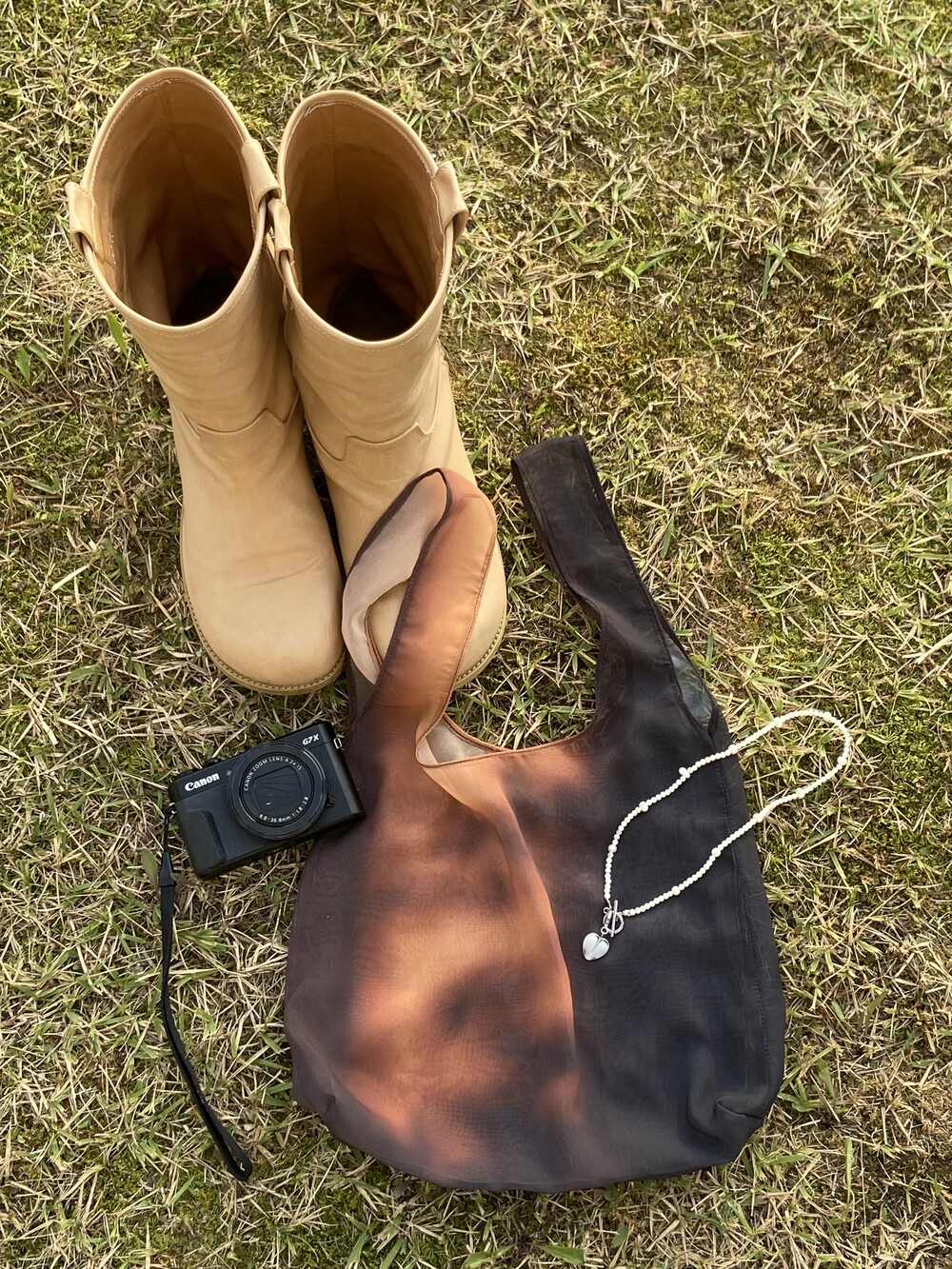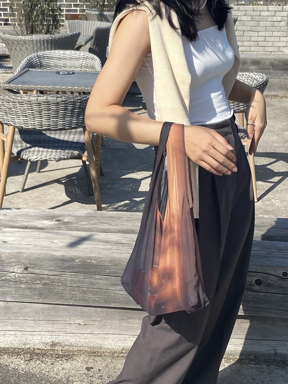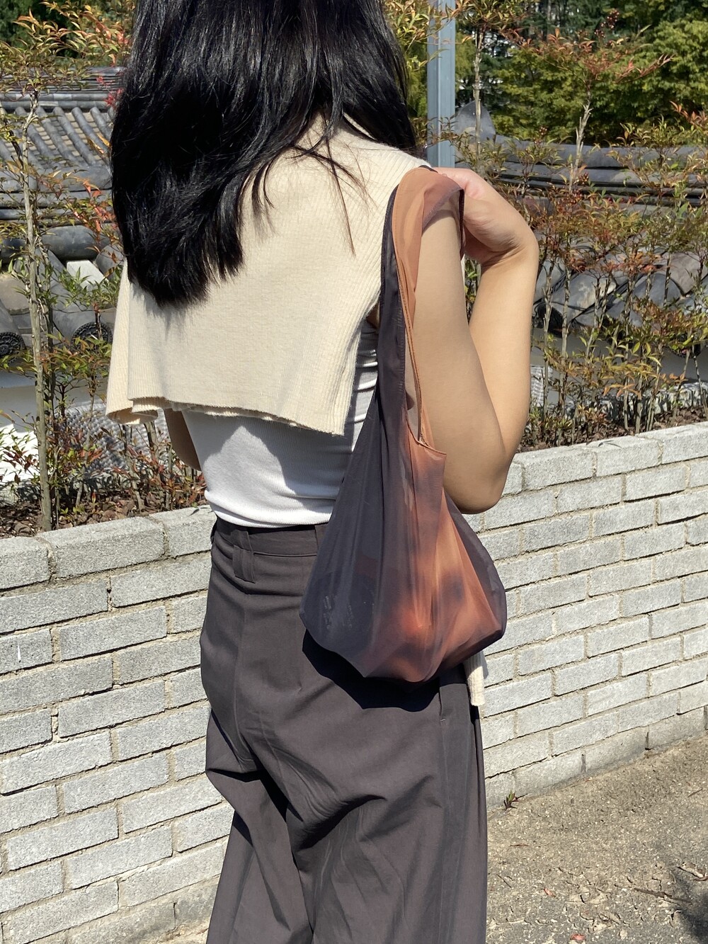 얇은 소재로 빛을 비추었을 때 달라지는 색감이 굉장히 매력적인 가방이에요 :)